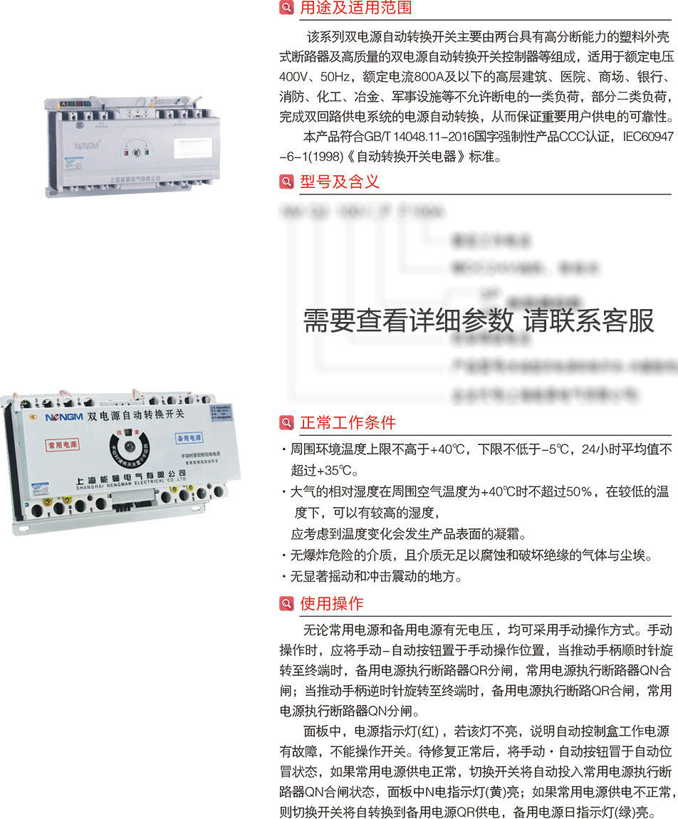NMQ2-63~1250A末端型(塑殼型)雙電源轉換開關CB級