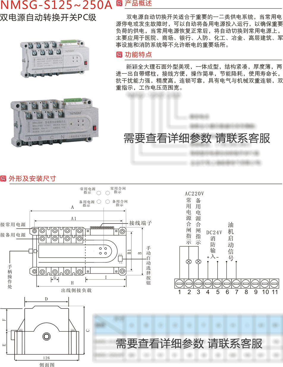 NMSG-S125~250A雙電源自動轉換開關PC級