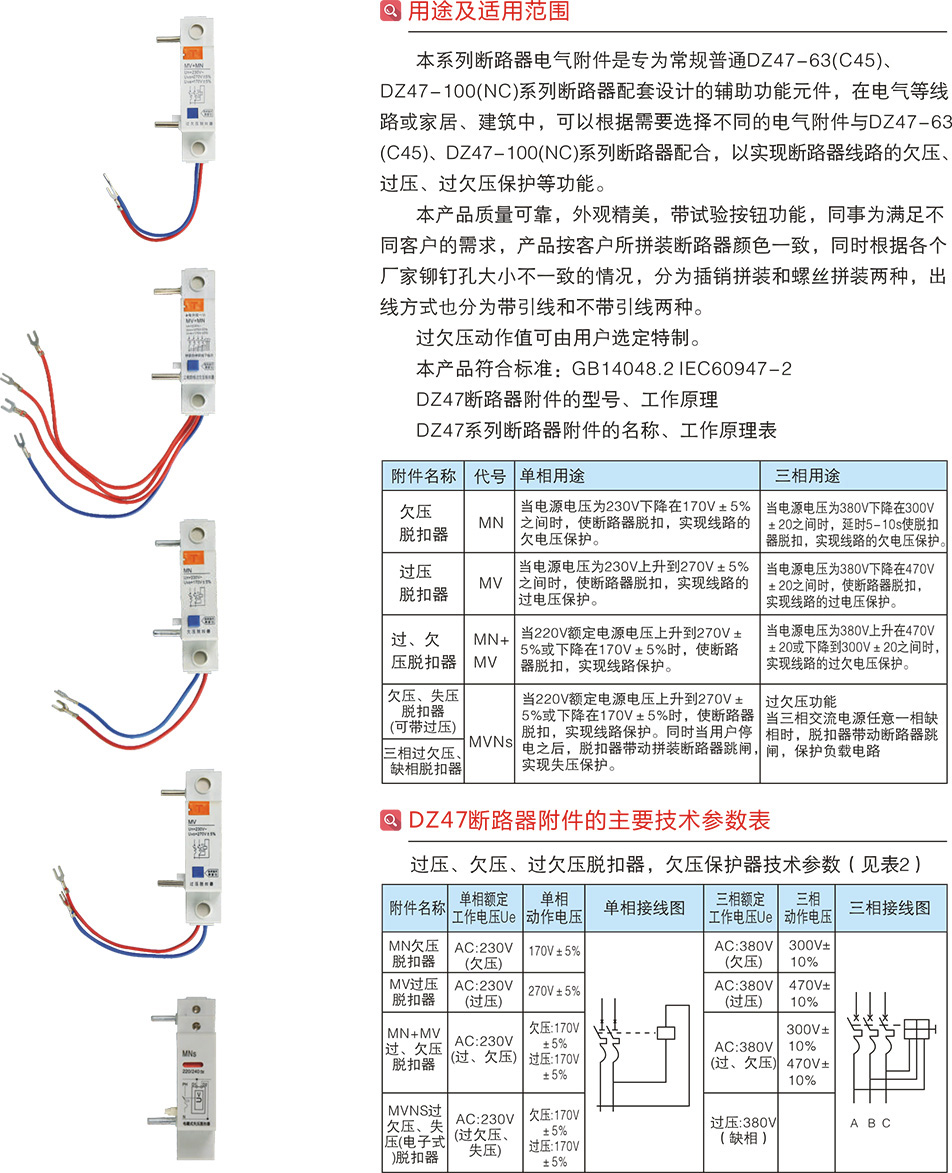 MV,MN,MV+MN,MNs過壓,欠壓,過欠壓,失壓脫扣器