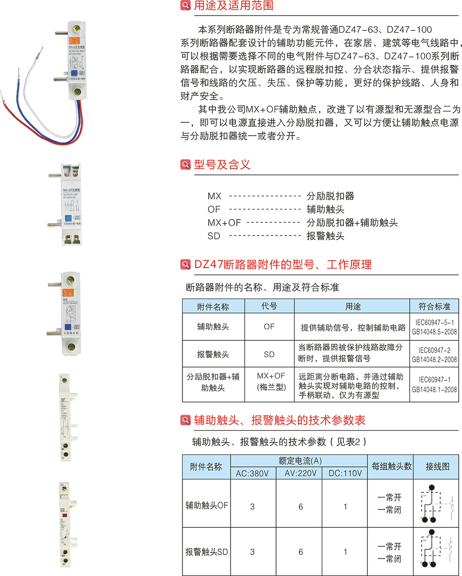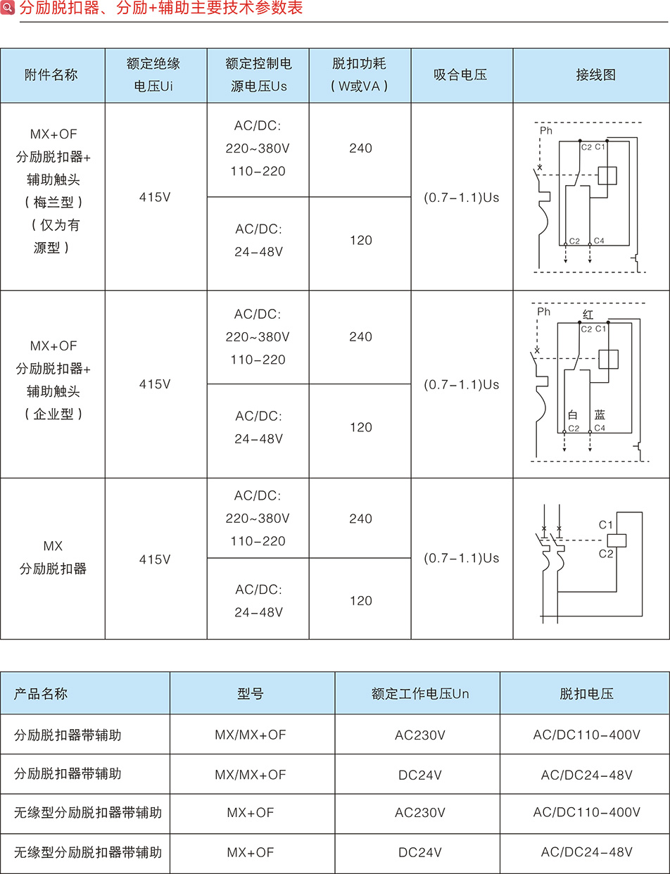 MX、OF、MX+OF、SD分勵、輔助、分勵+輔助、報警附件