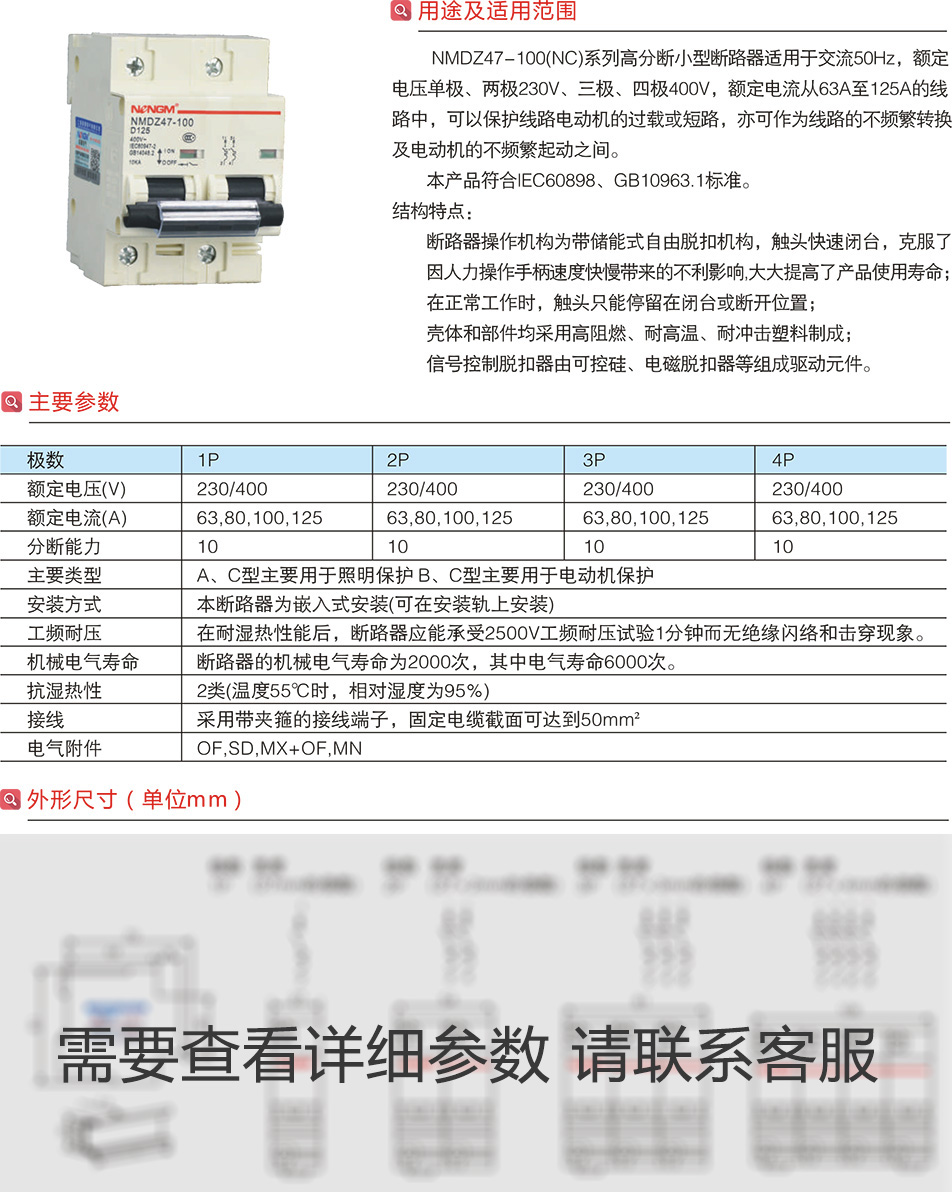 NMDZ47-100(NC)系列高分斷小型斷路器
