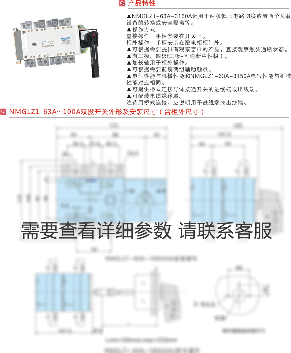 NMGLZ1-63A~3150A轉換隔離開關(雙投開關)上下組合